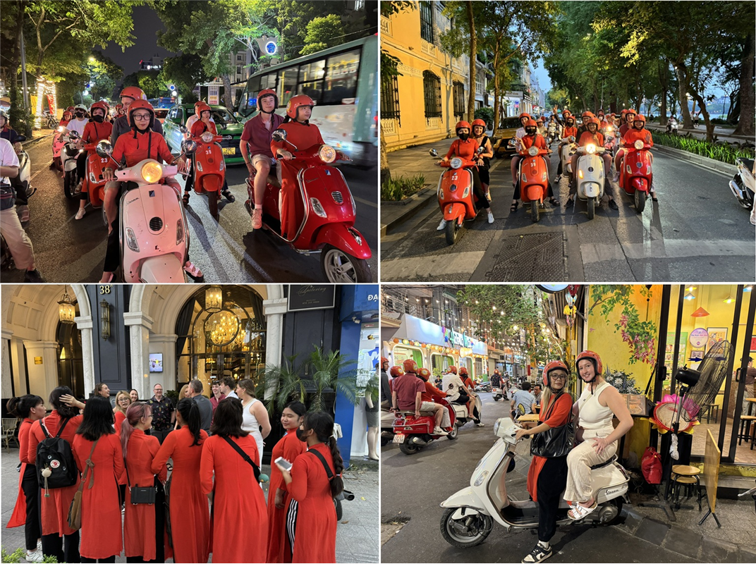 Hanoi Vespa Night Street food tour with female riders, this be one of the most interesting way to see Hanoi Night life, and enjoy the local food, so much fun to see Hanoi Night at night